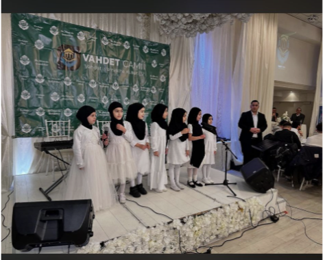 Alman basınından “Welt” gazetesinin haberine nazaran mescitte düzenlenen programda, kelamlarında “şehadet” ve “Allah yolunda mücadele” üzere tabirler geçen “Şehitler Kervanı” isimli marş da seslendirildi. Ayrıyeten toplumsal medyada paylaşılan manzaralarda çok küçük yaştaki kız çocuklarının başörtülü halde sahneye çıkarılması dikkat çekti.