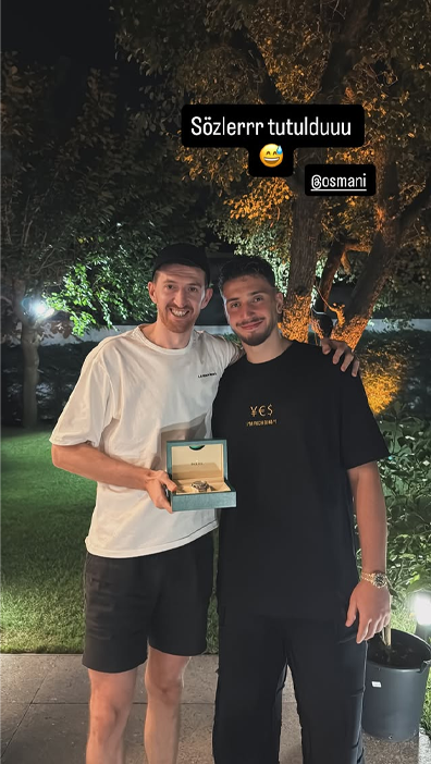 Turnuvanın tamamlanmasından günler sonra Alperen Şengün, Ercan Osmani’ye kelam verdiği saati armağan ettiğini paylaştıkları fotoğrafla gösterdi.