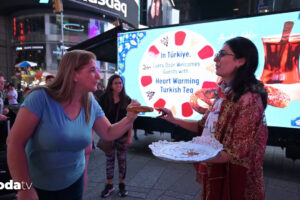 Türk simidi ve Türk çayı, “Anadoludakiler” projesinin tanıtımı çerçevesinde, Times Meydanı’nda New Yorklulara ikram edildi.