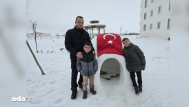 Baba–oğuldan kış harikası: Mahalleye eskimo evi kurdular