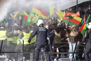 Belçika polisi, terör örgütü YPG yandaşlarına biber gazı ve tazyikli suyla müdahale etti.