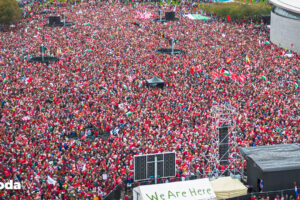 Hollanda’nın başşehri Amsterdam’da toplanan yaklaşık 250 bin kişi, hükümetin İsrail yanlısı siyasetini protesto etti.
