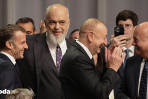 Kopenhag’da düzenlenen tepede, Arnavutluk Başbakanı Edi Rama, Fransa Cumhurbaşkanı Emmanuel Macron ve Azerbaycan Cumhurbaşkanı İlham Aliyev’le sohbet ederken kameralara yakalandı.