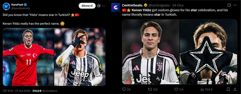 Viral olan paylaşımların akabinde Kenan Yıldız’ın yanı sıra Arda Güler ve Volkan Demirel üzere bir çok Türk futbolcunun da soy ismi öbür İngilizce ve öteki lisanlara çevrildi.
