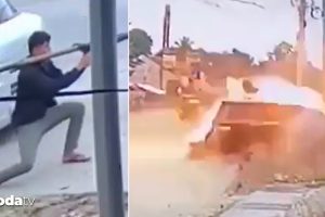 Shariff Aguak Belediyesi tarafından paylaşılan manzaralarda yolun karşı tarafındaki bir şüphelinin, belediye liderinin aracına roket attığı görülüyor.