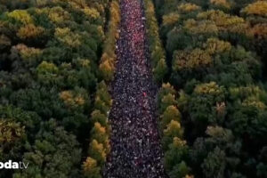 Eyalet Başbakanlığı önünde toplanan 100 binden fazla kişi, Federal Meclis önünden geçerek Berlin’in sembollerinden Grosser Stern Meydanı’na yürüdü.