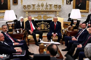 Trump’ın dün Oval Ofis’te Cumhurbaşkanı Erdoğan’a hitaben söylediği, “Türkiye Cumhurbaşkanı Recep Tayyip Erdoğan ile bir ortaya gelmek benim için bir zevk. Biz uzun vakittir dostuz ve kendisi çok hürmet duyulan bir adam.” cümlesiyle paylaşılan görüntüde, Erdoğan’ın Beyaz Saray ziyaretinden farklı kesitler yer aldı.