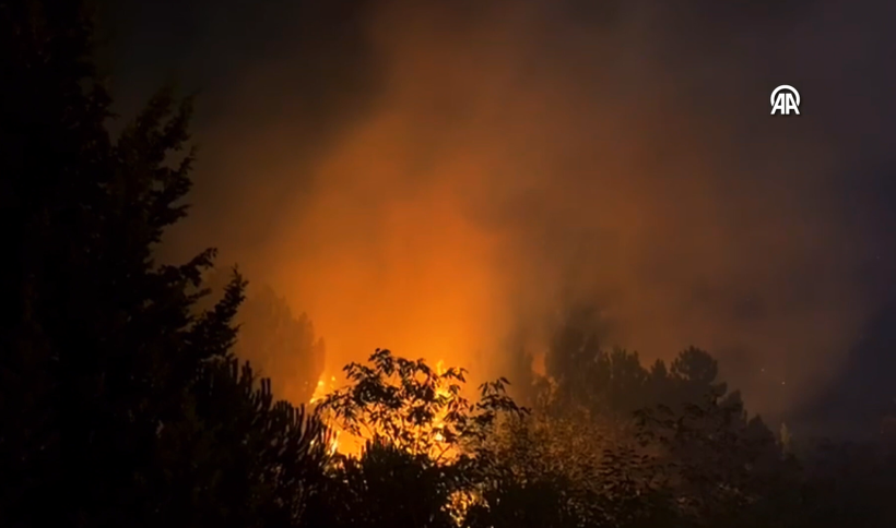 İtfaiye takımlarının rüzgarın tesiriyle süratle yayılan yangına müdahalesi sürüyor.