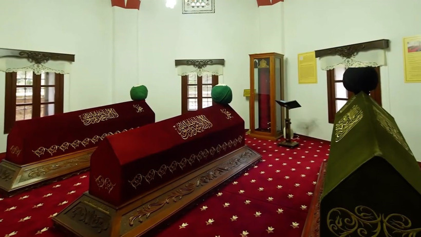 Osmanlı mimarisinin seçkin örnekleri ortasında yer alan türbe, asırlardır yerli ve yabancı ziyaretçileri ağırlıyor. Türbe içerisinde Akşemseddin ile oğullarına ilişkin sandukalar bulunuyor.