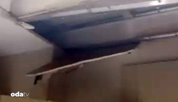 Bursa’da inşaatı yeni tamamlanan bir binadaki dairede mutfak tavanı çöktü. o anlar güvenlik kamerasına yansıdı.