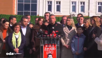 19 Mart operasyonu mağdurlarının oluşturduğu Aile Dayanışma Ağı, Silivri’de yargılanan belediye liderlerine takviye için bir araya geldi. CHP lideri Özgür Özel, TRT mikrofonunu eline alarak TRT ve AA’nın yayınlarına reaksiyon gösterdi.