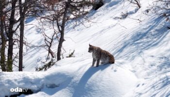 Tunceli’de, ormanlık alanda yiyecek arayan vaşak Tabiat Müdafaa ve Ulusal Parklar (DKMP) görevlilerince drone ile görüntülendi.