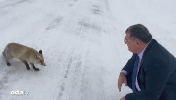 Artvin’in Şavşat Belediye Başkanı Durmuş Aydın, Sahara Geçidi’nde karşılaştığı tilkiye yiyecek verdi.