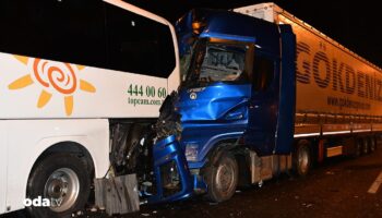 Bilecik’in Bozüyük ilçesinde tırın çeşit otobüsüne arttan çarpması sonucu 13 kişi yaralandı. Kazada öğrencilerin de bulunduğu çeşit otobüsünde ve tır şoföründe hafif yaralanmalar meydana geldi.