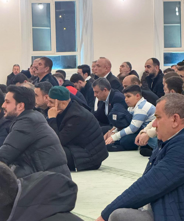 Özgür Özel, kandil gecesi vesilesiyle okunan Kur’an-ı Kerim tilavetini, mevlidi ve ilahileri dinledi.