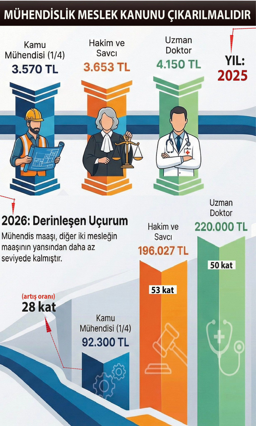 Demir, “Eğer kamu mühendisleri de denk mesleklerle tıpkı oranda düzgünleştirilmiş olsaydı, bugün maaşları en az 185 bin lira olacaktı. Bu fark tesadüf değil, şuurlu bir tercihtir.” tabirlerini kullandı.