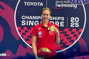 Millî para yüzücü Defne Kurt, bayanlar 100 metre sırtüstü S10 kategorisi finalindeki 1.06.95’lik derecesiyle bir defa daha dünya şampiyonluğu sevinci yaşadı.