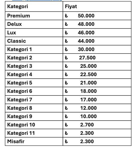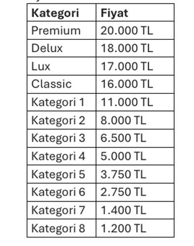 Cumartesi saat 20.00’de oynanacak olan dev maçın bilet fiyatları şu biçimde: