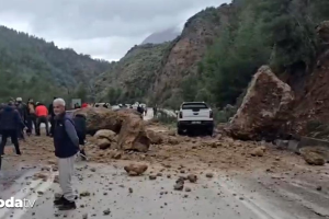 Isparta–Antalya kara yolunda meydana gelen heyelan nedeniyle yola dev kaya modülleri düştü. Olay sonrası kara yolu büsbütün trafiğe kapanırken, yolda kalan şoförler ve vatandaşlar kayaları kaldırmak için kendi imkânlarıyla harekete geçti.