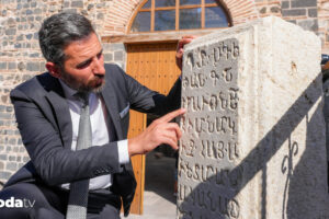 “Müdürlüğümüze gelen bir telefon ihbarıyla Hani ilçemize gittik. İlçede 6 Şubat Kahramanmaraş merkezli sarsıntılarda ziyan gören kimi meskenlere yönelik yıkım çalışması yapıldığını gördük. Yıkım ve hafriyat esnasında bir tarihi yapıta rastlanılmış. İnşaat alanında yaptığımız araştırmada bir mezar kapağı olduğunu gözlemledik. Yerinden alıp İçkale’ye getirdik. Mermerden olan mezar kapağını 10 Ağustos’ta açılışını yaptığımız Saint George Kilisesi önünde sergilemek için hazırlık yaptık.”