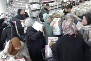 Mağazada 100 TL’den satılan çaydanlıklar, çerezlikler ve çeşitli konut eşyaları, yoğunluğun artmasına neden oldu. Yüzlerce kişinin birebir anda içeri girmeye çalışması vakit zaman sıkıntı anların yaşanmasına yol açarken, mağaza vazifelileri kalabalığı denetim altına almaya çalıştı.
