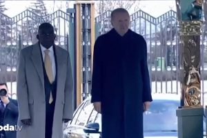 Cumhurbaşkanı Erdoğan, Tinubu’yu Cumhurbaşkanlığı Külliyesi’nin ana giriş kapısında karşıladı. Erdoğan ve Ahmed Tinubu merasim alanındaki yerlerini almalarının akabinde, 21 pare top atışı eşliğinde iki ülkenin ulusal marşları çalındı. Tinubu, Muhafız Alayı Merasim Kıtası’nı ‘Merhaba Asker’ diyerek selamladı. Merasimde, tarihte kurulan 16 Türk Devletini temsil eden bayraklar ve askerler de yer aldı. Heyetlerini birbirine takdim eden Erdoğan ve Tinubu merdivenlerde Türkiye ve Nijerya bayrakları önünde gazetecilere poz verdi.