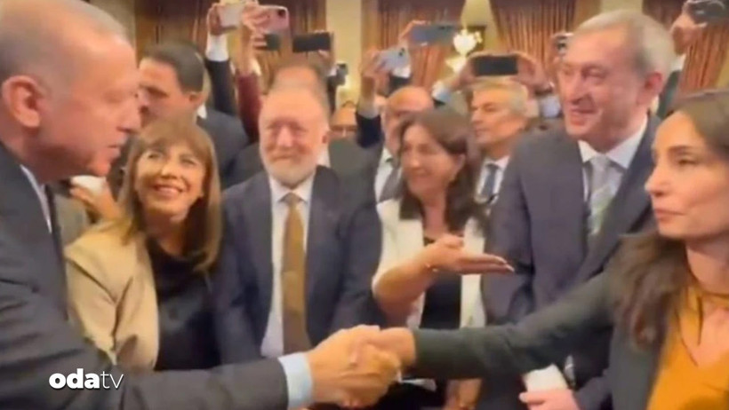 Erdoğan, bir süre DEM Parti Eş Genel Liderleri ile sohbet etmişti. Erdoğan Genel Kurul’da tokalaşmadığı Hatimoğulları ile resepsiyonda tokalaşmıştı.