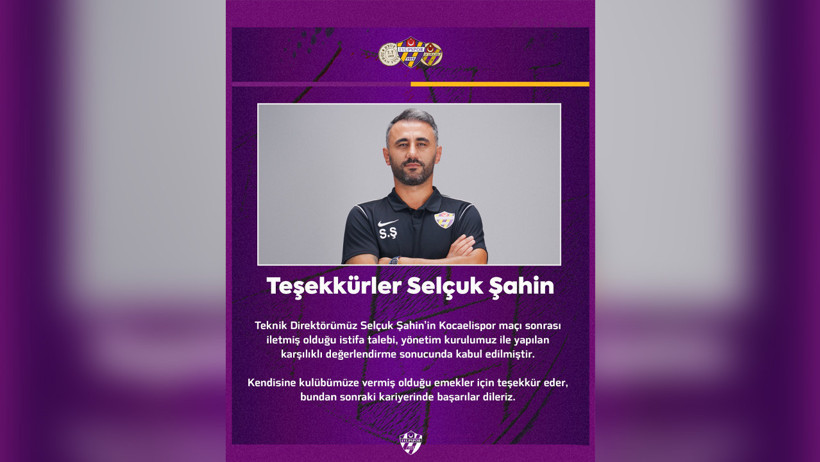 Eyüpspor, Kocaelispor maçının akabinde istifa eden Selçuk Şahin’in talebini kabul ettiğini açıkladı.