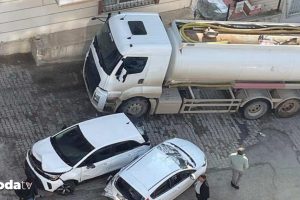 Batman merkez Çamlıtepe Mahallesi’nde seyir halindeyken freni boşalan akaryakıt tankeri, denetimsiz formda geri geri hareket etmeye başladı. Tanker, park halindeki araçların ortasına dalarak 8 araca çarptı. Çarpmanın tesiriyle araçlar kullanılamaz hale geldi. Güvenlik kamerası imajlarında, freni boşalan tankerin geri gelerek önüne çıkan araçları biçtiği anlar net bir halde görülüyor. İmajlarda, tanker şoförünün aracı durdurmakta zahmet çektiği ve kısa müddette büyük hasarın oluştuğu dikkat çekti. Olay sırasında sokakta kimsenin bulunmaması beklenen faciayı önlerken, kazada can kaybı ya da yaralanma yaşanmadı.