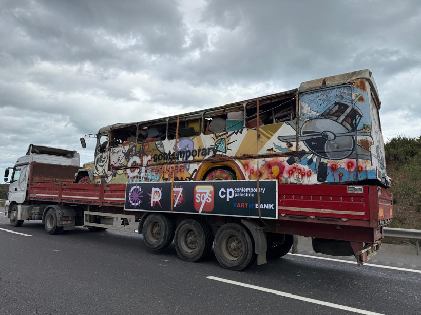 Otobüsün altında logoya göndermelerin olduğu tabloda CP 77 yazıyor. Buradaki 77, 77 yıl evvel kurulan İsrail’e bir gönderme.