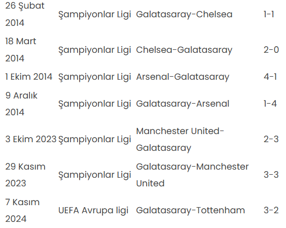 GALATASARAY’IN İNGİLİZ EKİPLERİNE KARŞI PERFORMANSI