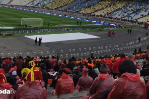 Saat 18:45’de oynanan uğraşta makûs hava kuralları nedeniyle iki kulüpte stadyuma gelen taraftarlarına yağmurluk dağıttı. Galatasaraylı taraftarlar dağıtılan yağmurluğun kalitesizliği nedeniyle Galatasaray idaresine ağır reaksiyon gösterdi.
