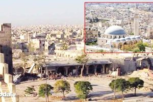 Kent surları içindeki, İznik üretimi mavi-beyaz çinilerle süslü Adliye Mescidinin de Sinan yapıtı olduğu belirtilirken; yapılardan gelen manzaralarda caminin roket isabetleri sonucu hasar aldığı anlaşıldı. Tarihi yapılarla ilgili alandan paylaşılan fotoğraf ve görüntüler, Halep’te savaşın sadece günlük ömrü değil, kültürel mirası da gaye aldığına işaret ediyor.