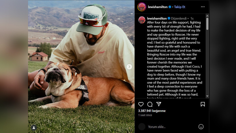 Köpeğinin hayatını kaybettiğini bildiren Hamilton, paylaşımında şu sözlere yer verdi: