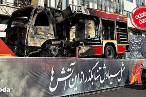 İran devleti, göstericilerin yaktığı itfaiye araçlarını sergiledi. Araçların yanındaki pankartta “Eğer Siyavuş isen bu ateşten yalnız geç” demek olan Farsça, “Mesl i Siyavuş tenha begozar in ateş” yazısı dikkati çekti.