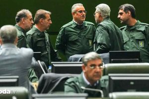 İran Meclis Başkanı Muhammed Bakır Kalibaf başta olmak üzere tüm milletvekilleri, DMO üniformaları giyerek genel heyet oturumuna katıldı.