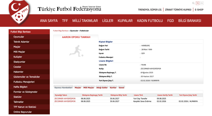 Kayserispor ile karşılıklı anlaşarak kontrat 2 Şubat 2026 tarihinde feshedildi.