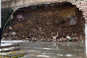 İstinat duvarının okul bahçesine devrildiği anlar ise o sırada bölgede bulunan bir vatandaş tarafından saniye saniye kaydedildi. Taş blokların lise bahçesine yığıldığı anları görüntüleyen vatandaş, “Gördüğünüz üzere eksiksiz duvar yıkıldı, kendiliğinden” dedi.