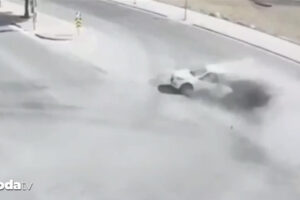 Öte yandan kaza anı, güvenlik kamerasınca kaydedildi.