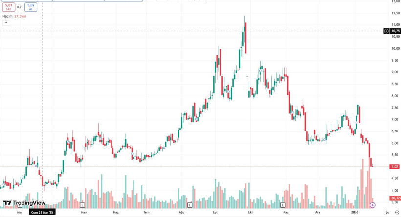 Hissenin 2025 yılı içinde 10–11 TL bandını test ettikten sonra sert bir düşüşle 5 TL düzeylerine kadar gerilemesi, bilhassa küçük yatırımcıyı ziyana uğrattı.