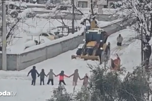 Minik eylemciler iş başında: Kartopu için yolu kapattılar