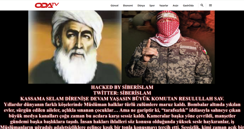 Kendilerine “Siber İslam” ismini takan bir küme gece saatlerinde Odatv.com’a siber taarruzda bulundu. Odatv’nin ana sayfasını erişime kapatan hackerlar kendi bildirilerini yayınladı. Ana sayfa ekranında yayınlanan bildiride Pir Said’in yanı sıra yüzü kefiye ile kapalı Kassam tugayları kumandanı Ebu Ubeyde’nin fotoğrafları kullanıldı. Metinde şu sözler yer aldı: