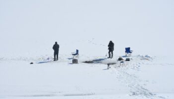 Gümüşhane'nin Kelkit ilçesinde balıkçılar, çok soğuklar nedeniyle yüzeyi buz tutan Sadak Baraj Gölü'nde ava çıkıyor.