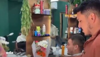 Muğla'da bir berber tıraş olmaya gelen müşterilerine 8 Mart İşçi Bayanlar Gününe özel eşlerine götürebilmeleri için çiçek ikram etti.