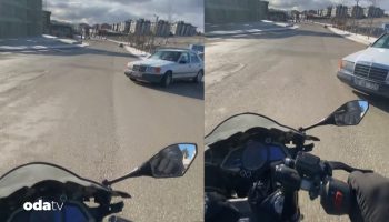 Eskişehir'de orta sokaktan caddeye denetimsiz biçimde çıkan bir araba, seyir halindeki motosiklet şoförüne kaygı dolu anlar yaşattı.