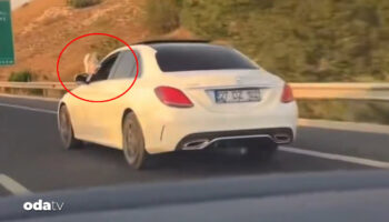 Gaziantep etraf yolunda seyir halindeki bir araçtan ayaklarını çıkartarak aracı süren kişinin manzaraları toplumsal medyada gündeme oturdu.