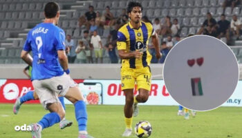 Güney Kıbrıs Rum Bölümü'nde (GKRY), Baf FC ile İsrail'in Maccabi Tel Aviv kadroları ortasında oynan futbol müsabakası sırasında stadyum üzerinde balonla Filistin bayrağı dalgalandırıldı.