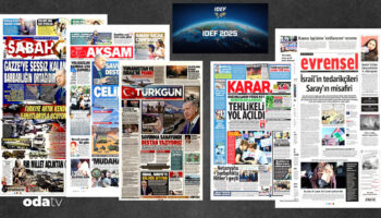 7. Milletlerarası Savunma Sanayii Fuarı IDEF 2025 başladı. 103 ülke ve milletlerarası kuruluşun katıldığı fuar gazeteleri ikiye böldü. Fuarı ve savunma sanayimizi öven yayınların karşısında, iştirakçi listesinde yer alan ve İsrail'e silah tedariği yapan firmaları manşete taşıyan gazeteler var.