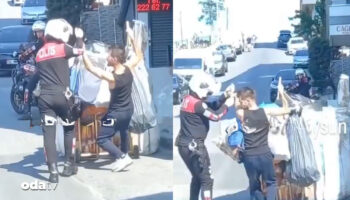 İstanbul'da dik bir yokuştan inemeyen kağıt toplayıcısını fark eden Yunus polisi, kağıt toplayıcısına yardım ederek yokuştan inmesini sağladı.