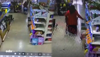 Mamak’ta bir markete alışveriş için gelen bayan bu esnada ayak üstü tuvaletini yapıp marketten ayrıldı. O anlar anbean güvenlik kamerasına yansıdı.